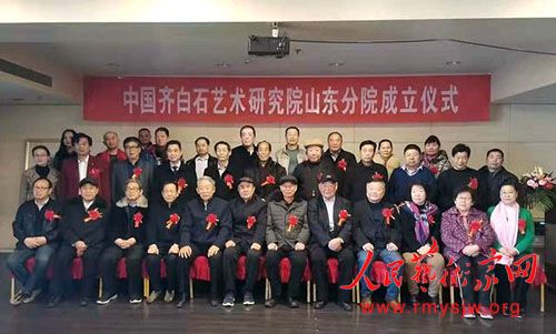 人民艺术家网山东潍坊讯(韩延祥)2020年1月10日上午,中国齐白石艺术研究院山东分院成立挂牌仪式,在潍坊三江大酒店举行。参加仪式的有市老领导,美术界领导,山东分院组织成员,书画家及新闻媒体人,共50余人参加了活动。 同时展出祝贺书画作品近百幅,以长卷(50米)形式展示。